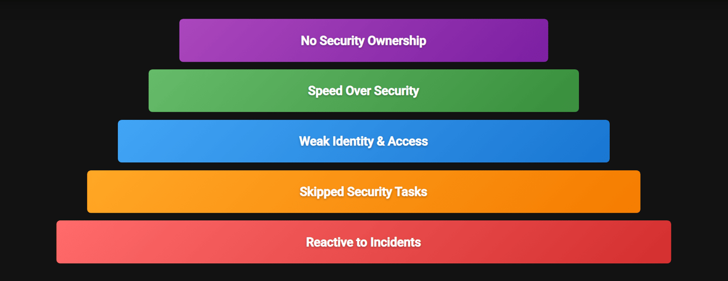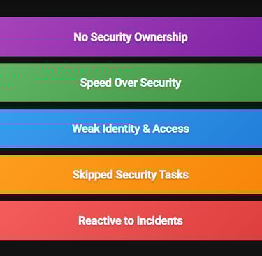 But because of security ownership, identity controls, and basic tasks are skipped under growth pressure.
