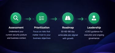 Get strategic security leadership without the full-time executive cost. Our vCISO service provides enterprise-level expertise tailored to your business size and growth stage.