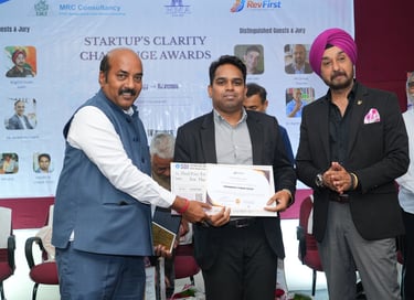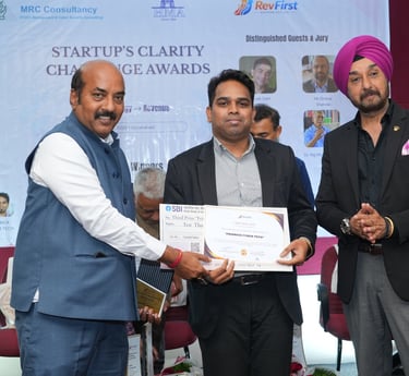 Recognized at the Startup Clarity Challenge Awards 2025–26, organized by MRC Consultancy (MRCC) at ASCI, Hyderabad, in association with the Hyderabad Management Association (HMA).